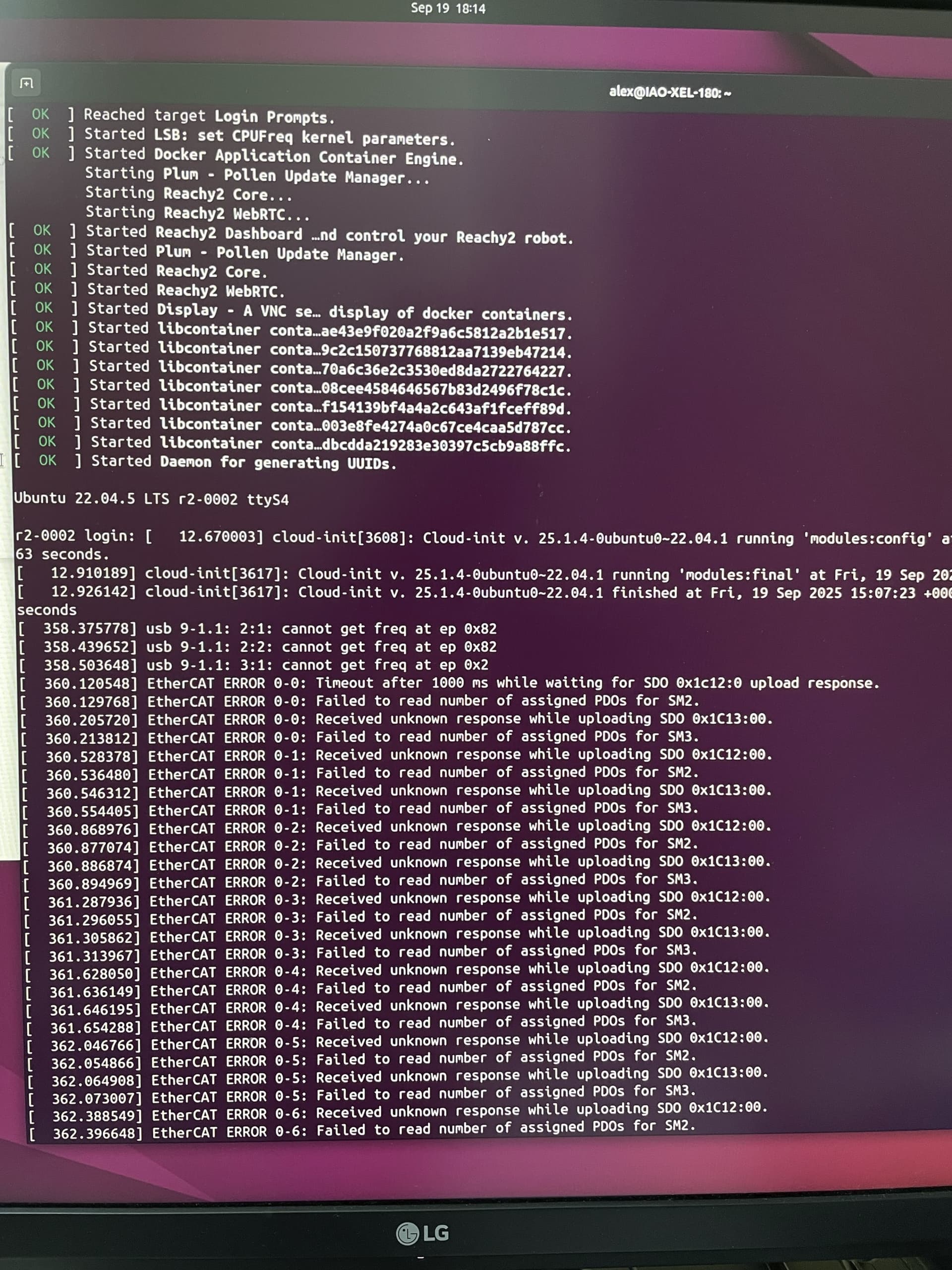 There is an error about “bad serial number” but dont know what to make of it. Attached you find also a screenshot from the tio session, where I also got a grub and ethercat error. The grub error does not persist. I can log on to the bedrock pc via tio and ssh and also on to the dashboard via ethernet connection.